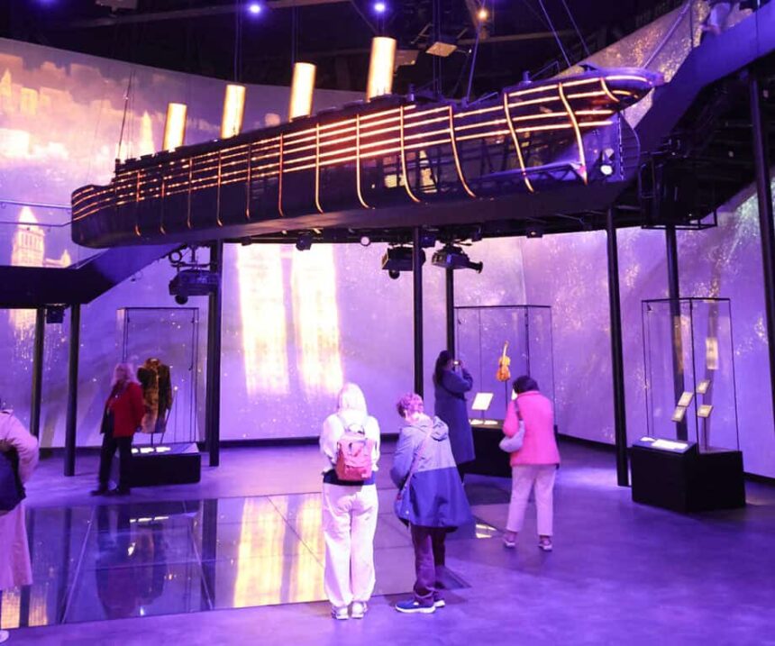 Pastato išorėje yra keturi paryškinti 38 m smailūs korpusai – tas pats aukštis kaip ir titaniko -, o viduje lankytojas patiria vingį per įvairias erdves. Su interaktyviomis ekspozicijomis, pirmojo asmens sąskaitose ir pasivažinėjimu laivų statykloje, kurioje yra keleiviniai automobiliai, judantys per „laivo žarnyną“, svečiai yra gerai linksmi. Pereiti taip pat yra stebėtinai emocinga patirtis, nes jautri pagarba yra mokama tiems, kurie prarado gyvybę tragedijoje.